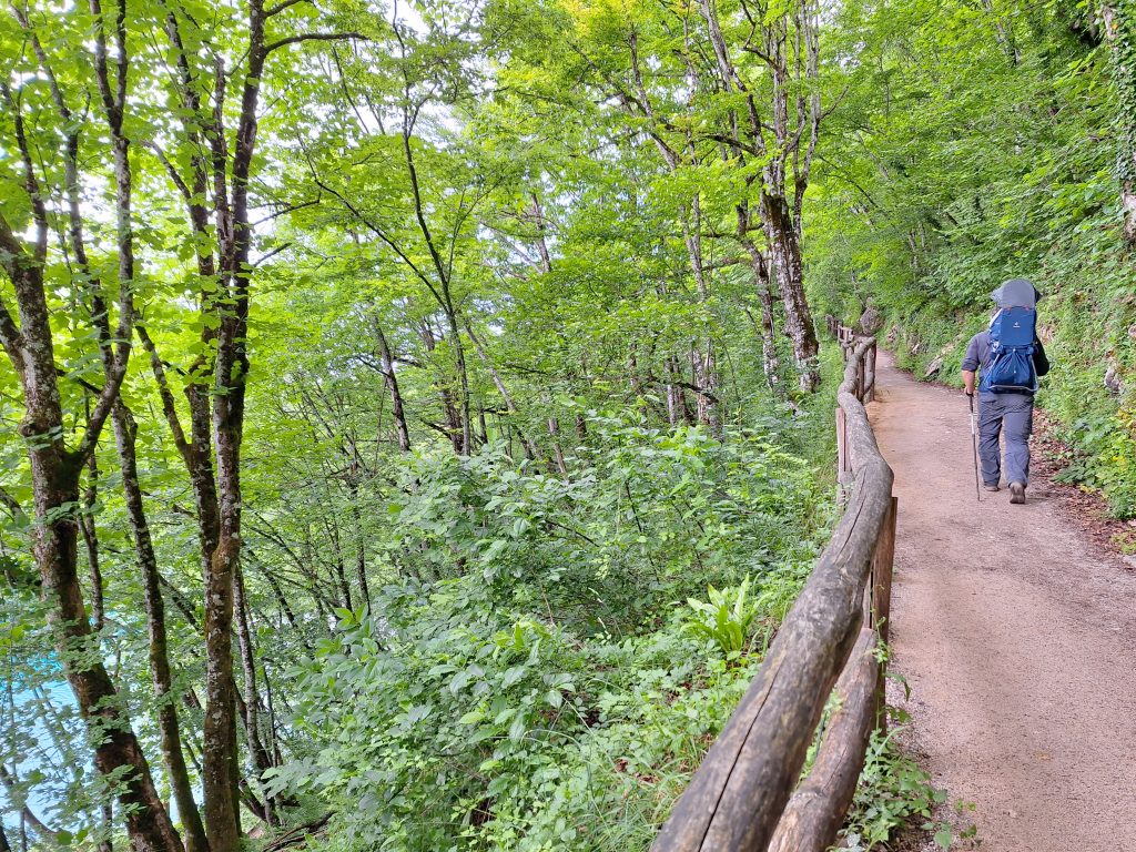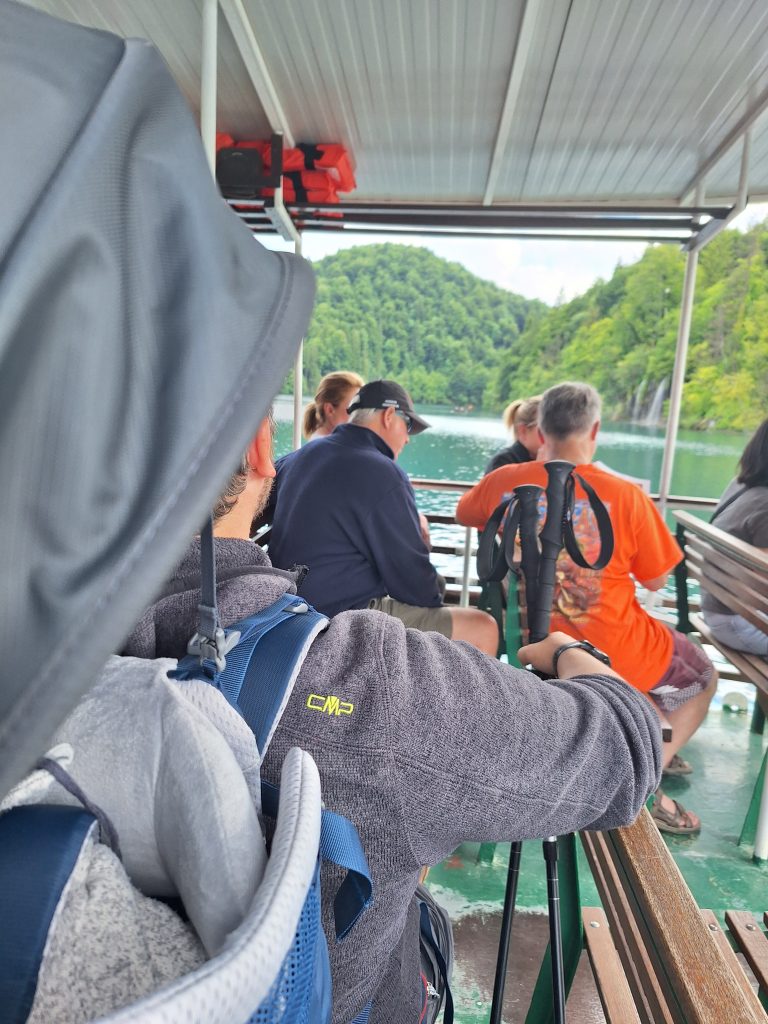 Die Holzstege der Plitvicer Seen schlängeln sich wie eine natürliche Achterbahn durch das Gebiet. Mal über, mal neben dem Wasser – jeder Schritt ein neues Naturerlebnis. Unser Kind hatte dabei den besten Platz der Welt: sicher in der Kraxe, mit Panoramablick auf die atemberaubende Landschaft.